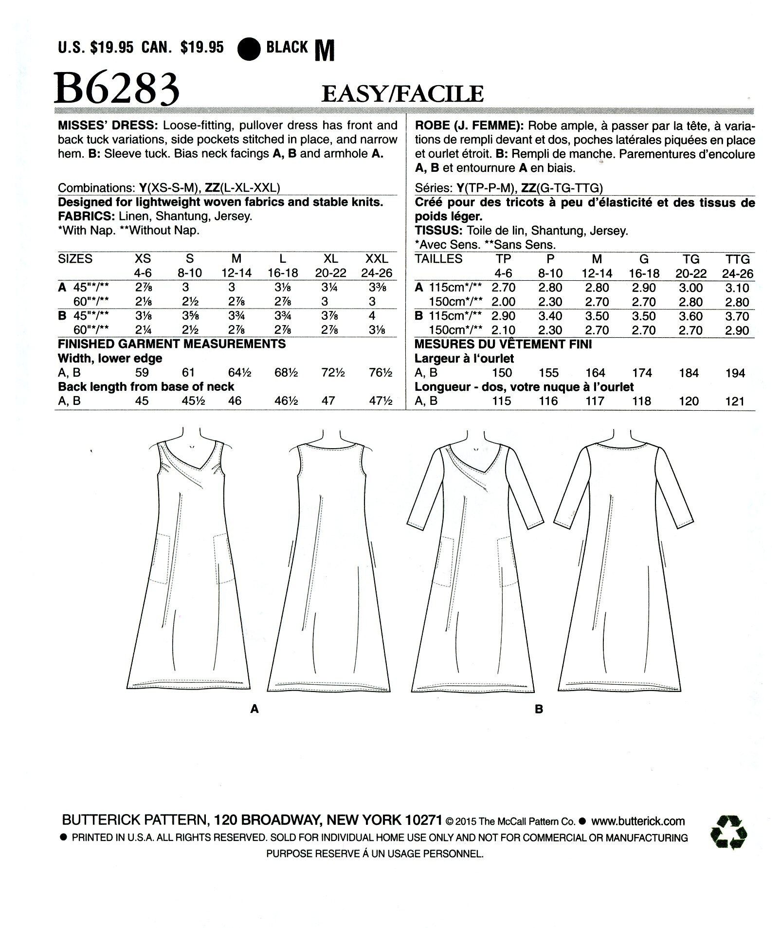 Butterick B6283 6283 Easy Pullover Dress By Katherine Tilton Etsy