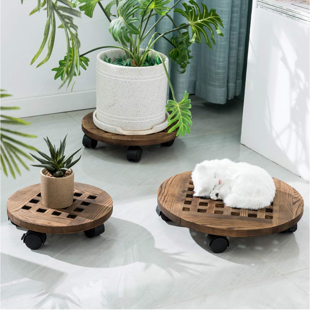 Amazon Com Gebot 16 Inch Rolling Wooden Planter Caddy Potted Plant Stand With Wheels Round Flower Pot Rack Indoor Outdoor Planter Trolley With 360 Rotating Casters Rolling Tray Coaster Garden Pot Dolly